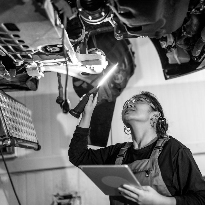 Im alltäglichen Straßenverkehr macht sich ein beschädigtes Fahrwerk zunächst selten bemerkbar. Sind bestimmte Toleranzen überschritten, sind Assistenzsysteme zudem nutzlos. Doch reagiert das Fahrzeug im Ernstfall nicht wie erwünscht, kann es schnell gefährlich werden. Das Fahrwerk sollte daher regelmäßig auf seine Leistungsfähigkeit geprüft werden. Der Profi erkennt dies oft schon am Zustand der Reifen. Darüber hinaus liefern die On-Bord-Diagnose (OBD), also das Auslesen des Bordsystems, sowie eine fachgerechte Sichtprüfung Gewissheit.